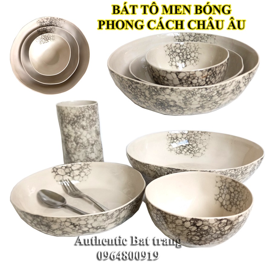 Giới thiệu Bát trộn salad, bát salad, bát ăn phở Men bong bóng Đẳng cấp và Sang Trọng Phong cách Châu Âu-Gốm sứ Authentic Bát tràng