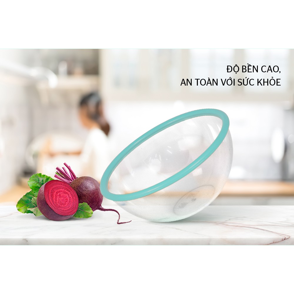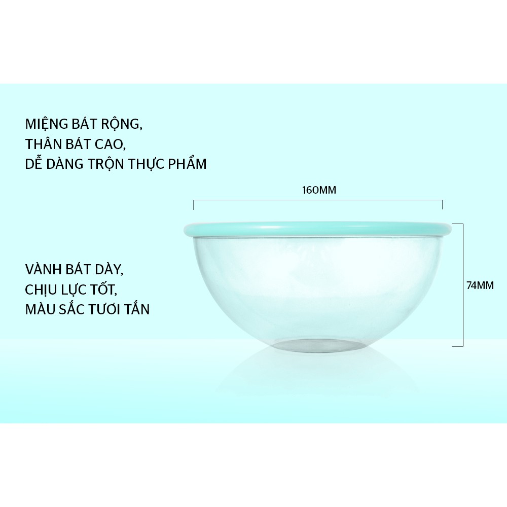 Bát có vành nhựa dày, chịu lực tốt, màu sắc tươi tắn, giúp căn bếp của bạn sinh động hơn.