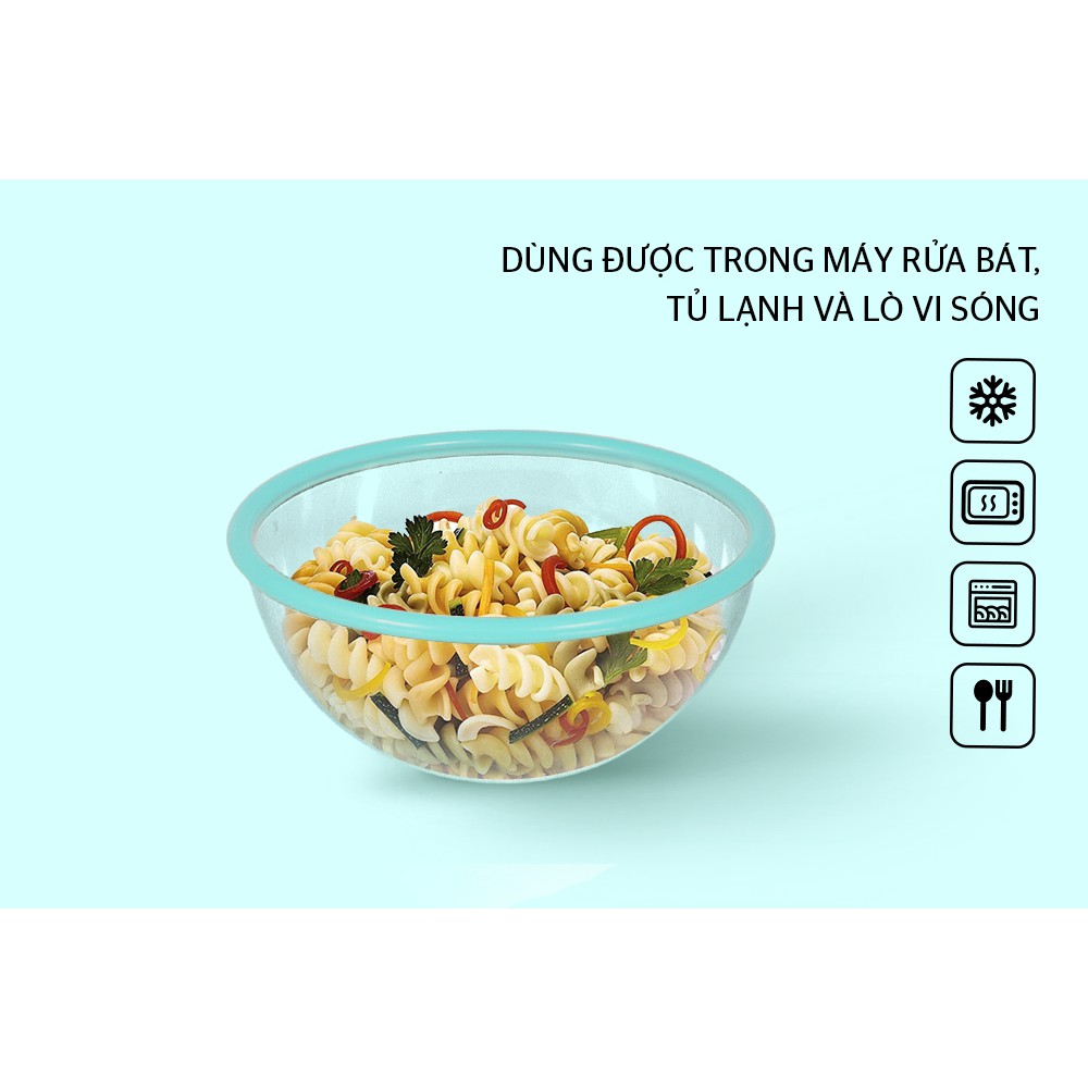 Thiết kế miệng bát rộng, thân bát cao, dễ dàng trộn nhiều loại thực phẩm