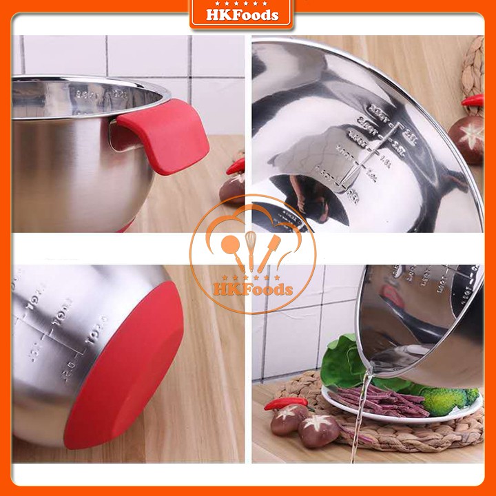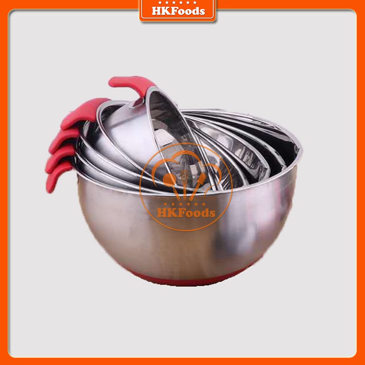 Bát Trộn/ Tô trộn/ Âu trộn bột inox cao cấp có quai và đế silicon chống trơn trượt