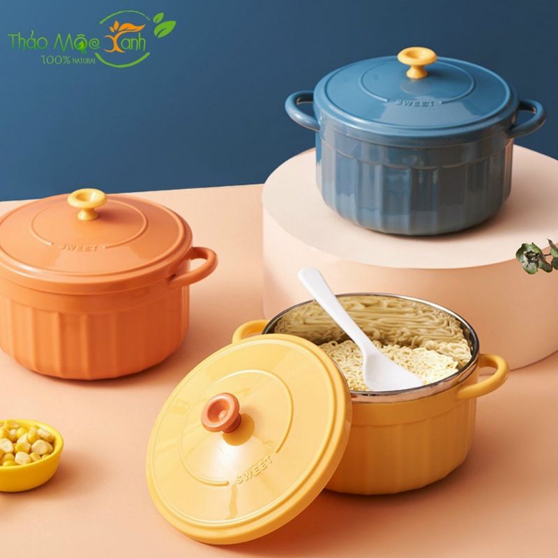 Bát úp mì - Bát ăn mì tôm inox 2 lớp cách nhiệt hình chiếc nồi có nắp đậy