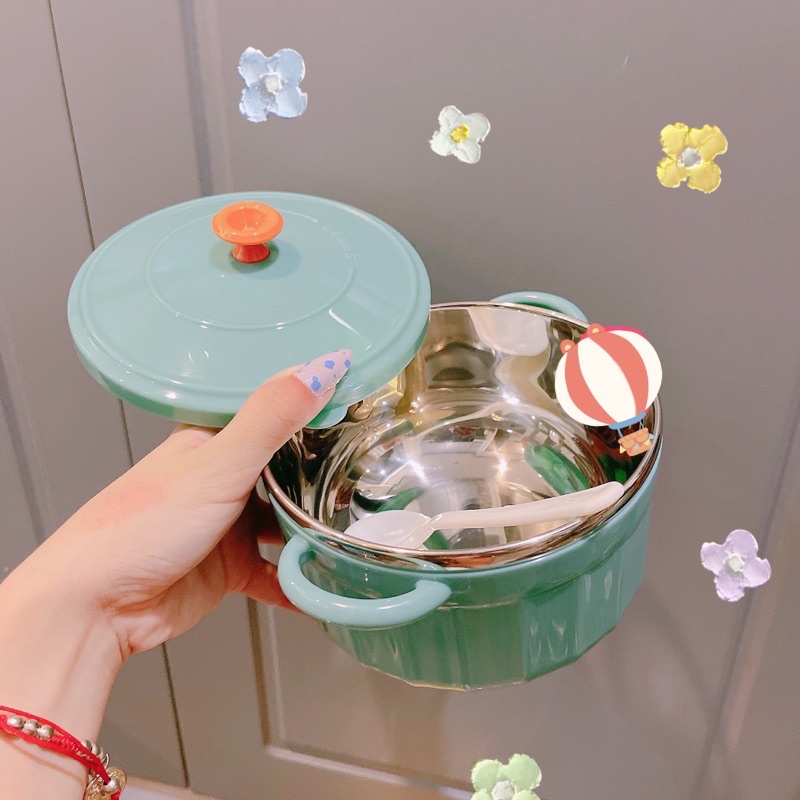 Bát Úp Mì - Bát Ăn Mì Tôm Inox 2 Lớp Cách Nhiệt Hình Chiếc Nồi Có Nắp Đậy vibesvietnam