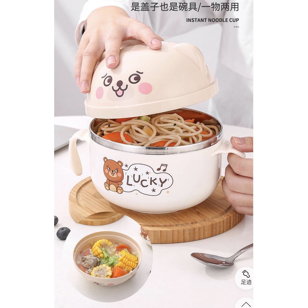 Bát úp mì có nắp hình thú Kèm Thìa - Hai Lớp inox chống nóng Cao Cấp🔰 Bát ăn mì độc đáo nhỏ gọn có 2 lớp chống nóng: