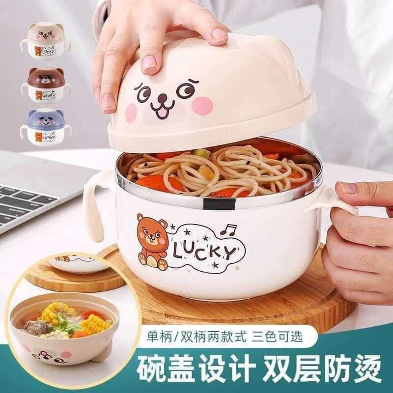 Nhà cửa & Đời sống > Bộ đồ bàn ăn > Tô || Bát úp mì có nắp hình gấu Kèm thìa hai lớp inox chống nóng Cao CấpCòn hàng