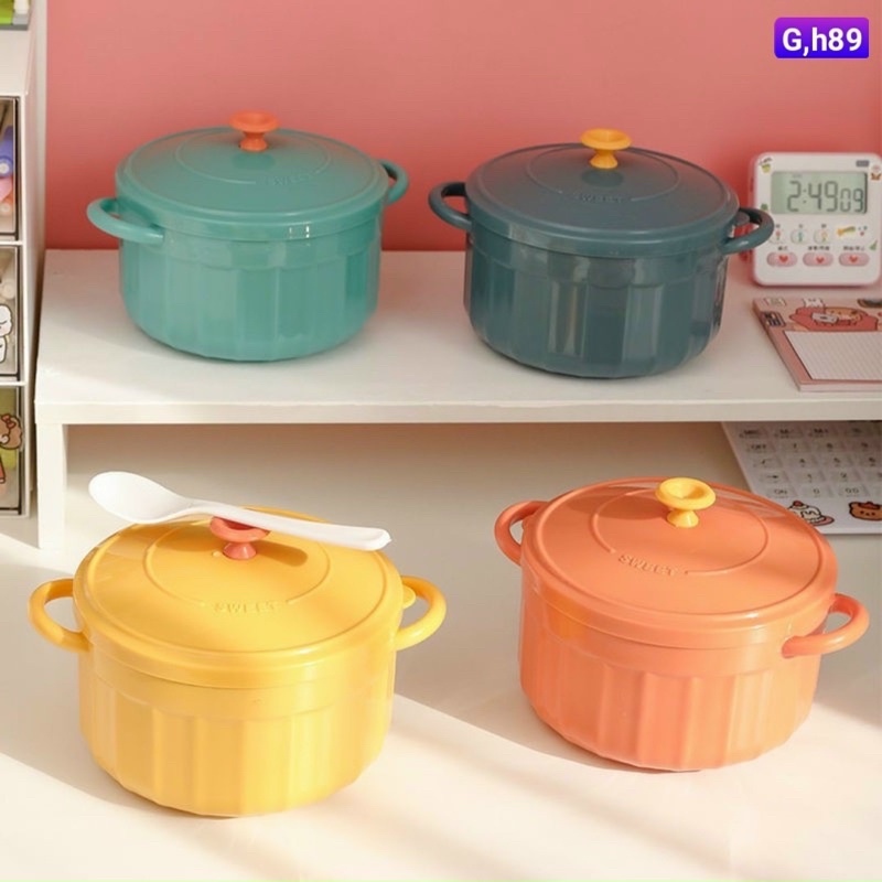 - Thiết kế tô ăn mì dạng nồi cực dễ thương, bát có quai cầm tiện lợi và nắp chắc chắn