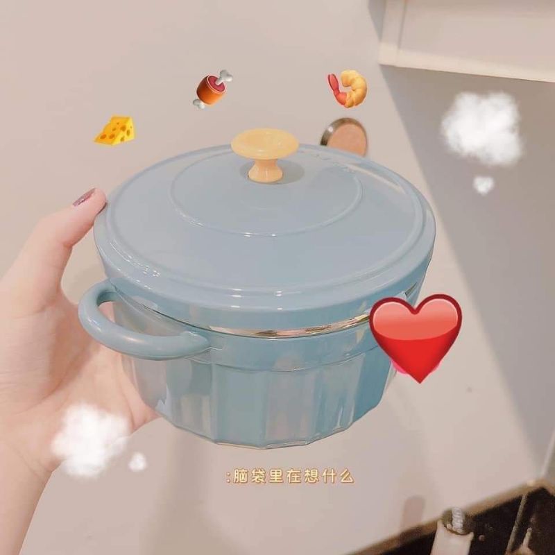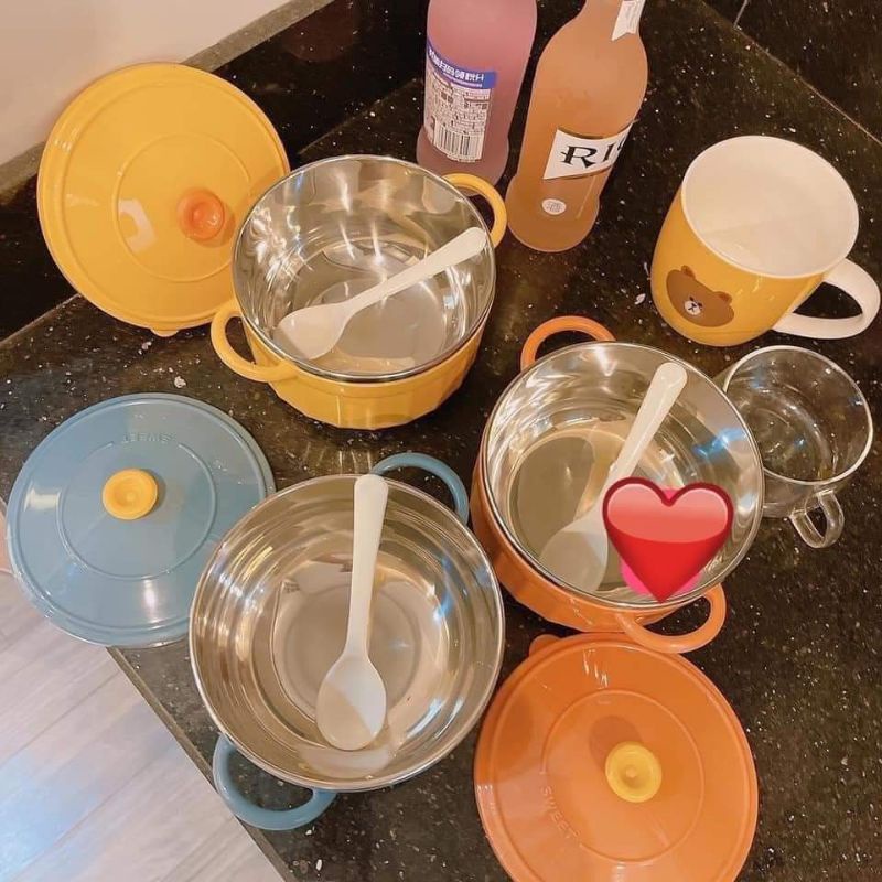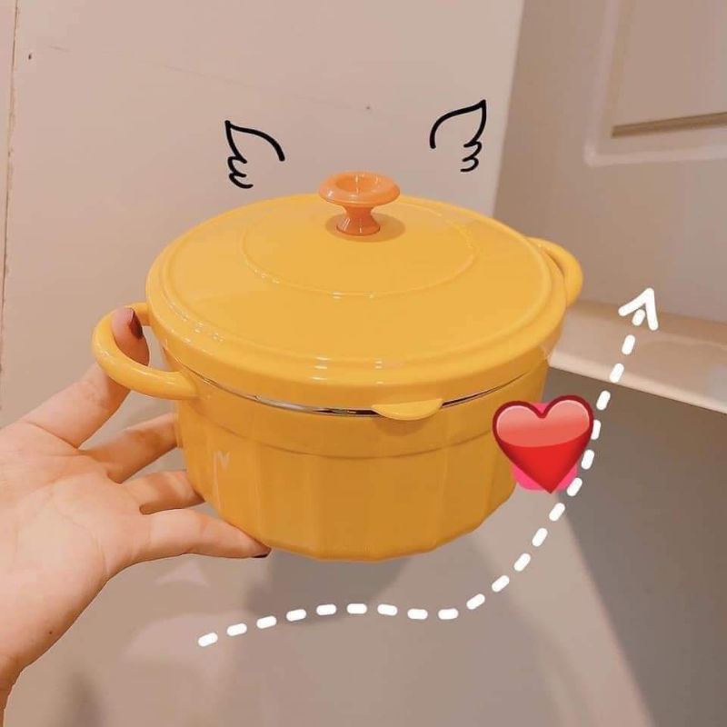 Nhà cửa & Đời sống > Bộ đồ bàn ăn > Tô || Bát úp mỳ, bát ăn mỳ tôm inox 2 lớp các nhiệt hình chiếc nồi có nắp đậyCòn hàng