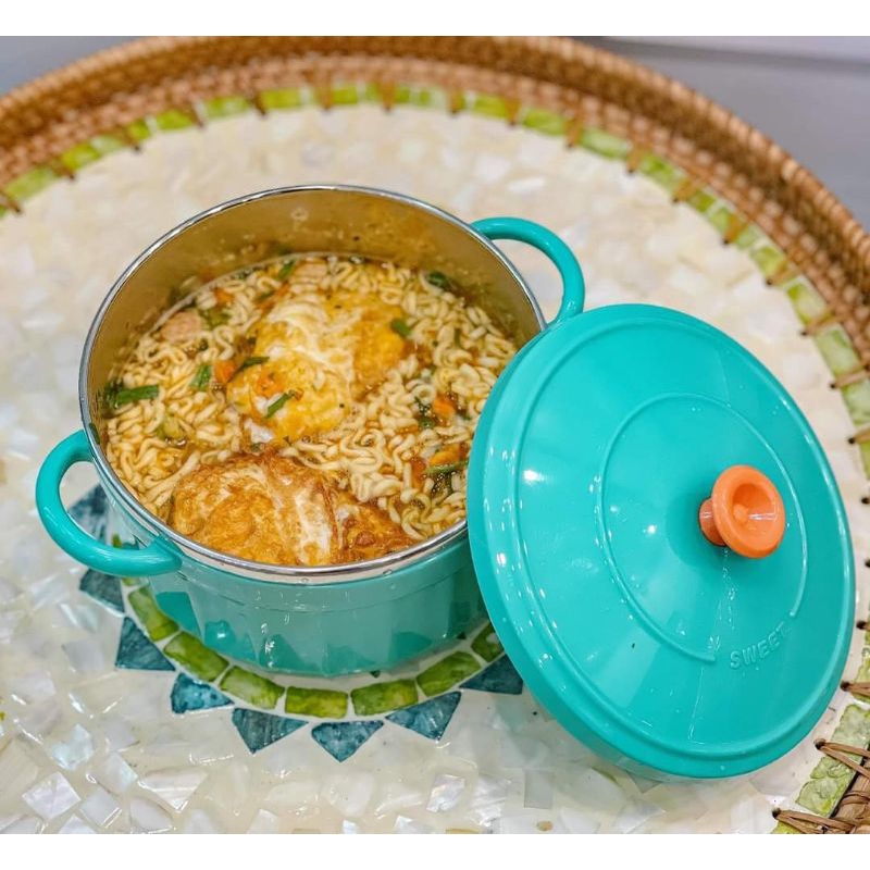 Bát úp mỳ, bát ăn mỳ tôm inox 2 lớp các nhiệt hình chiếc nồi có nắp đậy