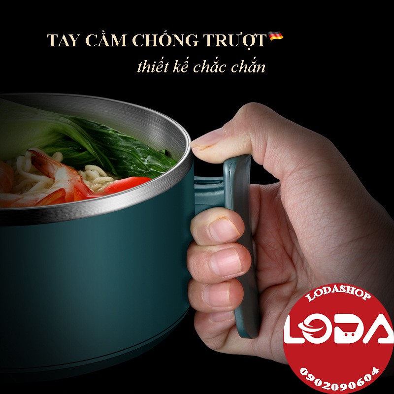 Bát úp mỳ tôm (đặc biệt dễ làm món mỳ xào) LODASHOP bằng inox, thiết kế mới nhất có khe thoát nước để làm được cả món mỳ xào, đế chống trượt, khe cắm thìa đũa, giá để điện thoại khi ănChất liệu: inox