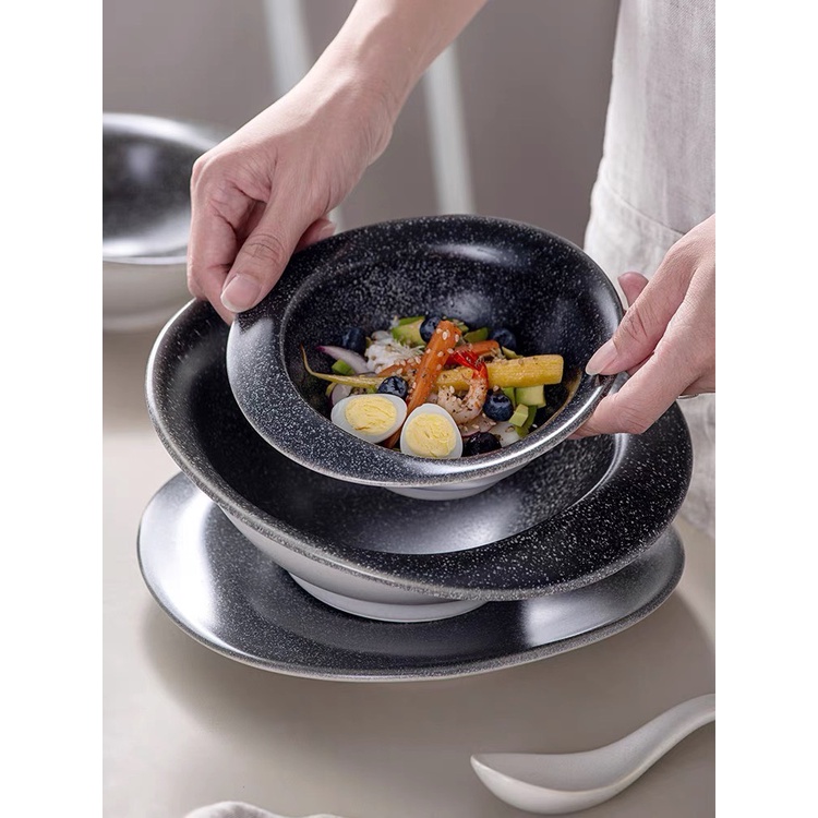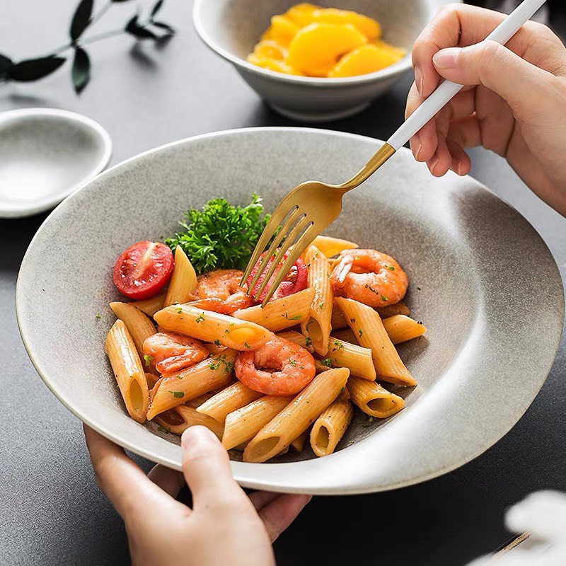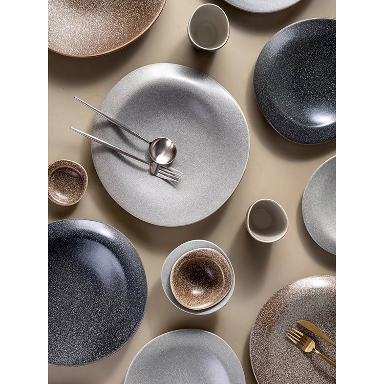 Nhà cửa & Đời sống > Bộ đồ bàn ăn > Dĩa || Bộ bát và đĩa lệch sang trọng, viền vàng, nhiều màu, sử dụng cho nhà hàng cao cấp hay gia đìnhCòn hàng