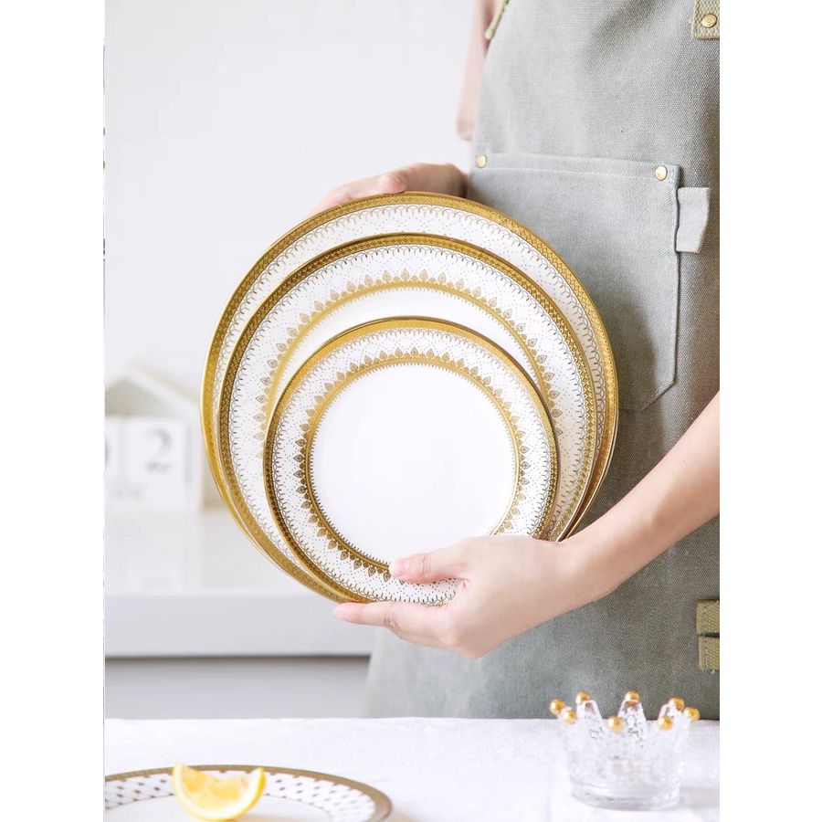 Nhà cửa & Đời sống > Bộ đồ bàn ăn > Tô || Bộ bát và đĩa phong cách Bắc Âu sang trọng, viền vàng,ăn tiệc cao cấp, để salad, ăn chính, bát soupCòn hàng
