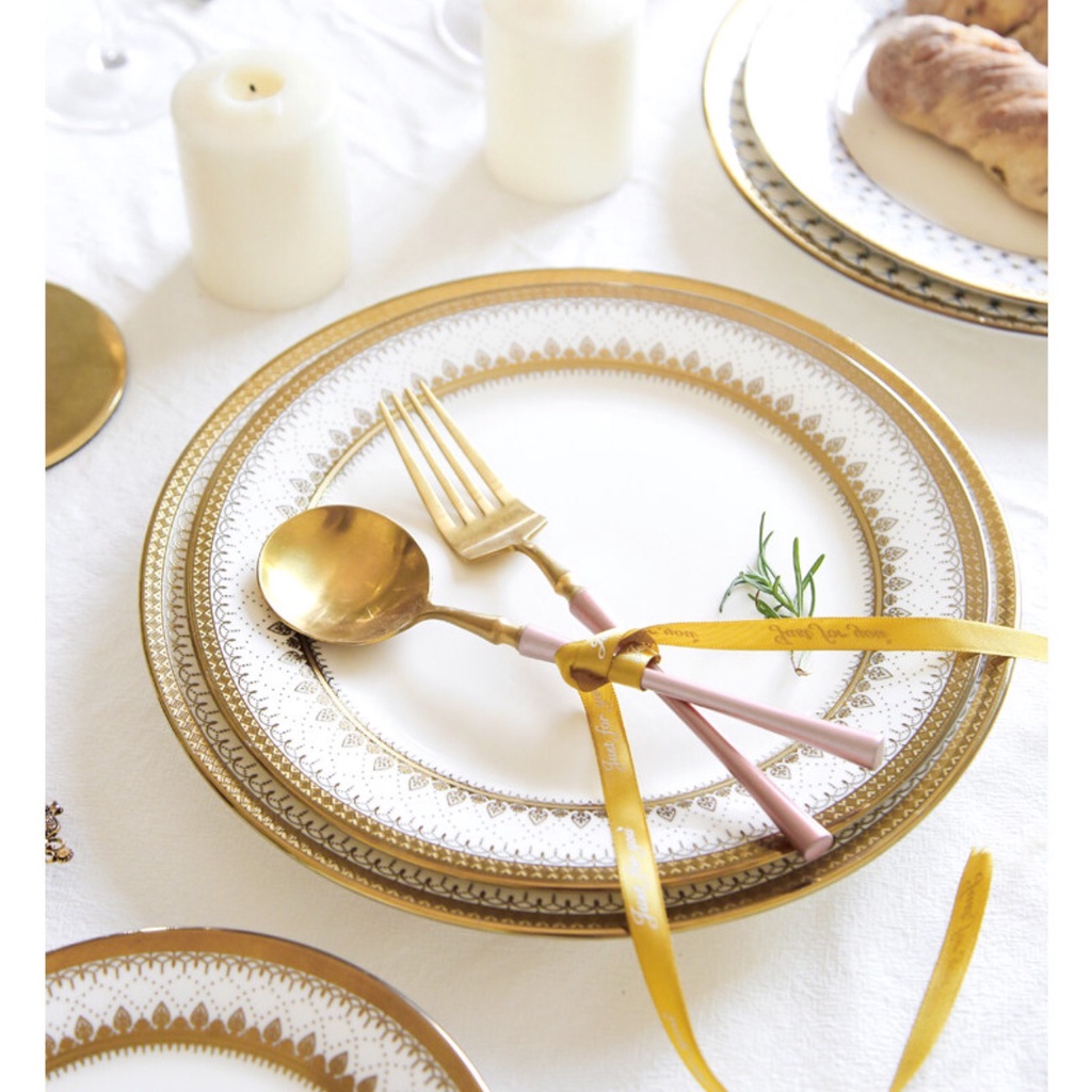 Bộ bát và đĩa phong cách Bắc Âu sang trọng, viền vàng,ăn tiệc cao cấp, để salad, ăn chính, bát soup