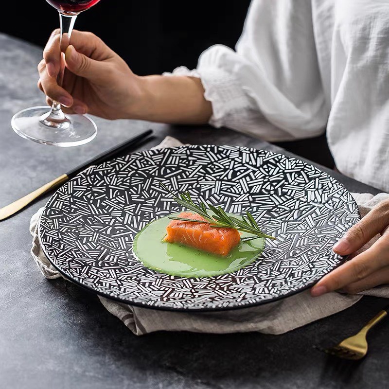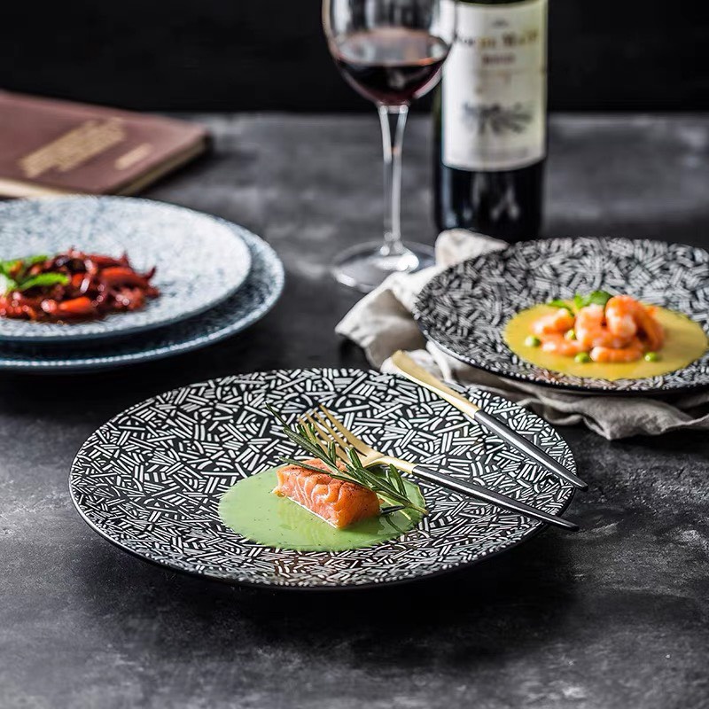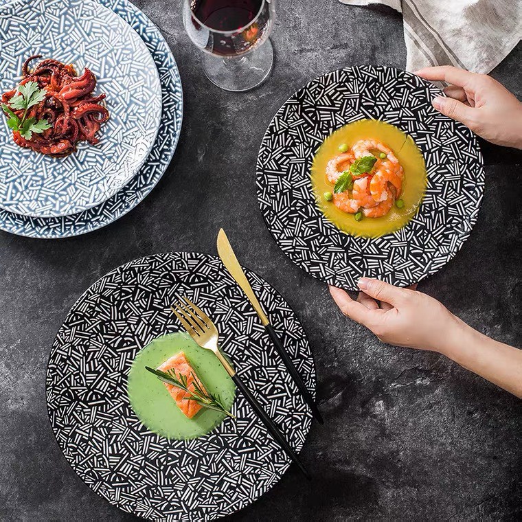 Nhà cửa & Đời sống > Bộ đồ bàn ăn > Dĩa || Bộ bát và đĩa phong cách Bắc Âu sang trọng, viền vàng,ăn tiệc cao cấp, để salad, ăn chínhCòn hàng