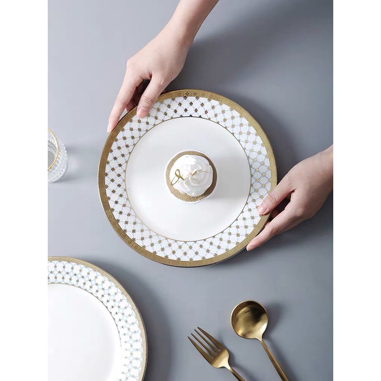 Nhà cửa & Đời sống > Bộ đồ bàn ăn > Dĩa || Bộ bát và đĩa phong cách Bắc Âu sang trọng, viền vàng,ăn tiệc cao cấp, để salad, ăn chính,bát soupCòn hàng