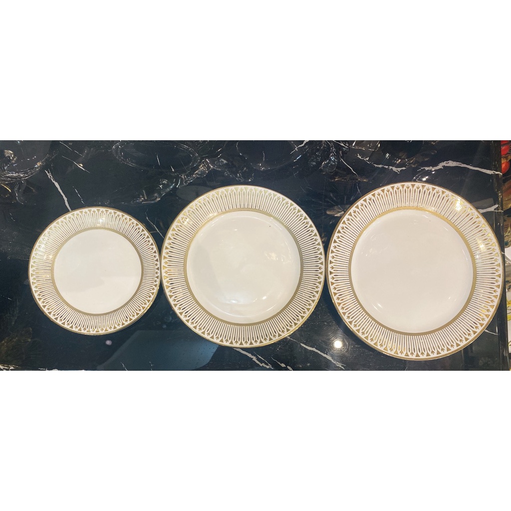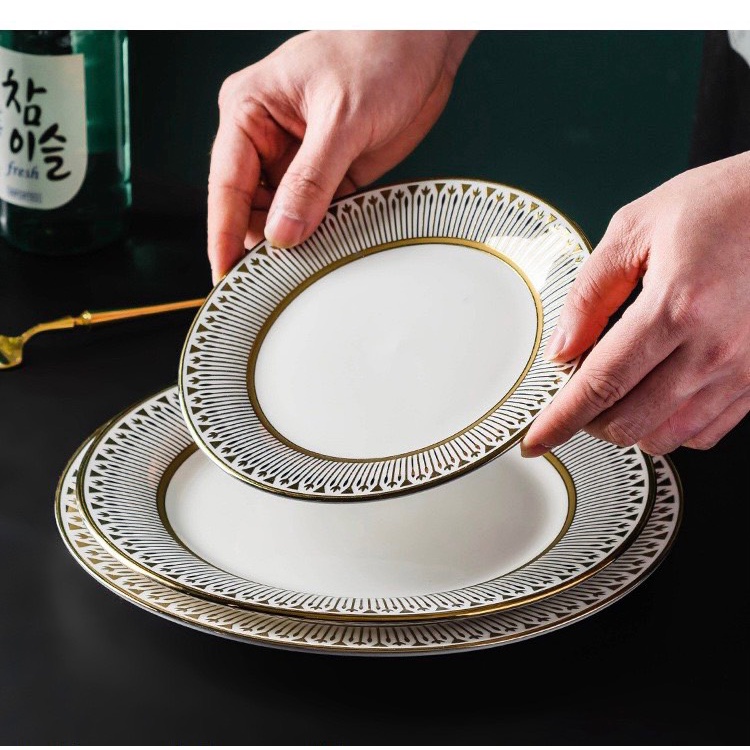 Nhà cửa & Đời sống > Bộ đồ bàn ăn > Dĩa || Bộ bát và đĩa phong cách Bắc Âu sang trọng, viền vàng, bát đĩa ăn tiệc cao cấp, đĩa salad, đĩa chính, bát soupCòn hàng