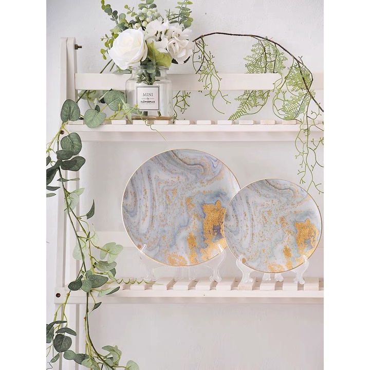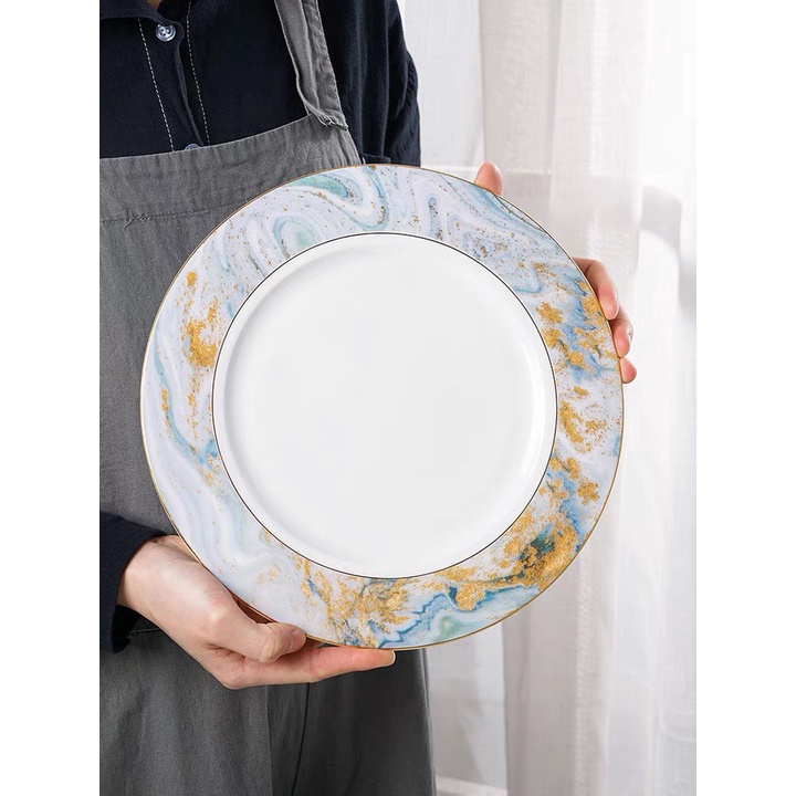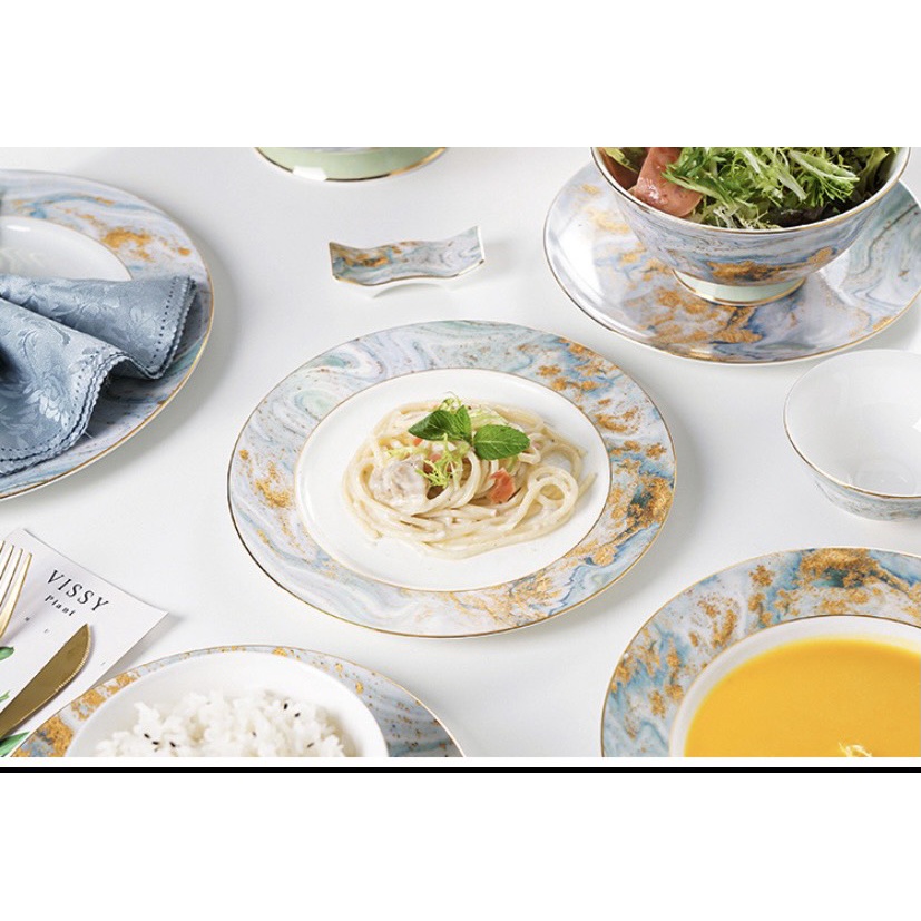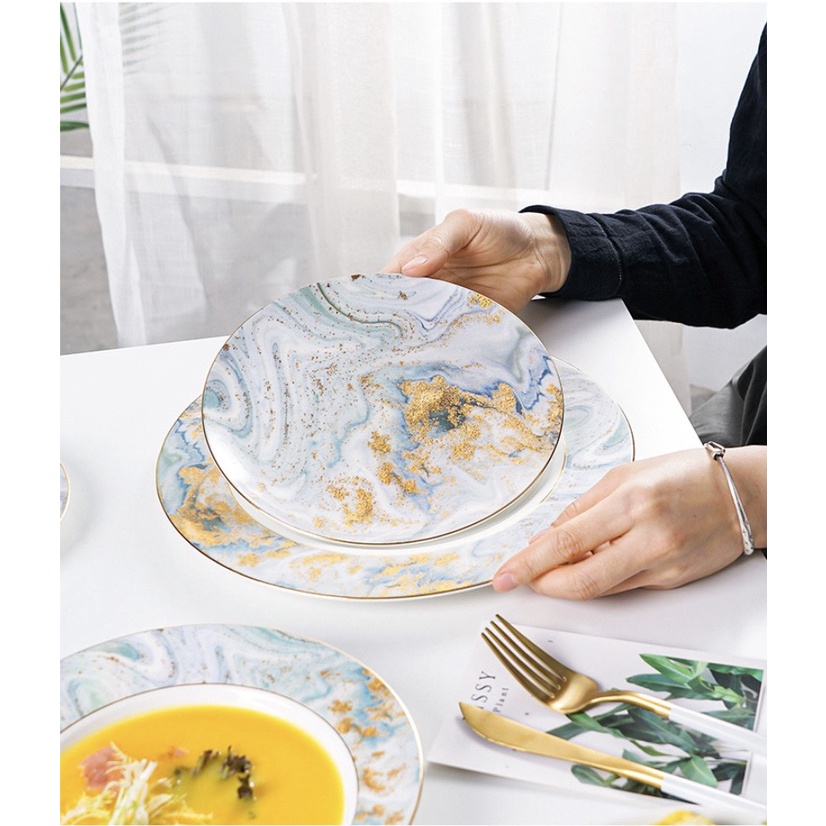 Nhà cửa & Đời sống > Bộ đồ bàn ăn > Dĩa || Bộ bát và đĩa phong cách Bắc Âu sang trọng, viền vàng,ăn tiệc cao cấp, để salad, ăn chínhCòn hàng