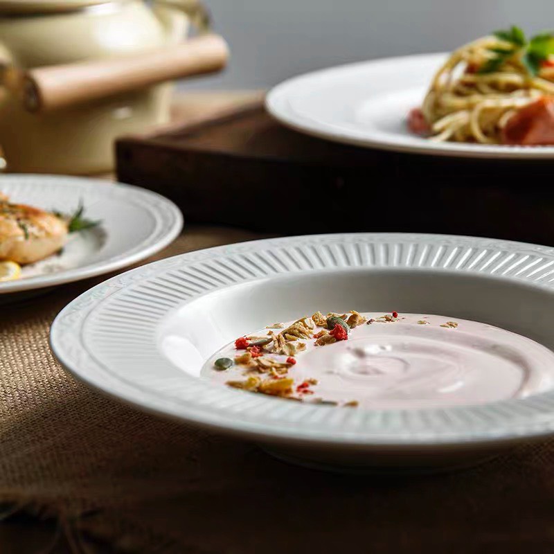 Bộ bát và đĩa phong cách nhà hàng Bắc Âu sang trọng, nhiều size, đường viền tinh tế của thiết kế sâu lòng