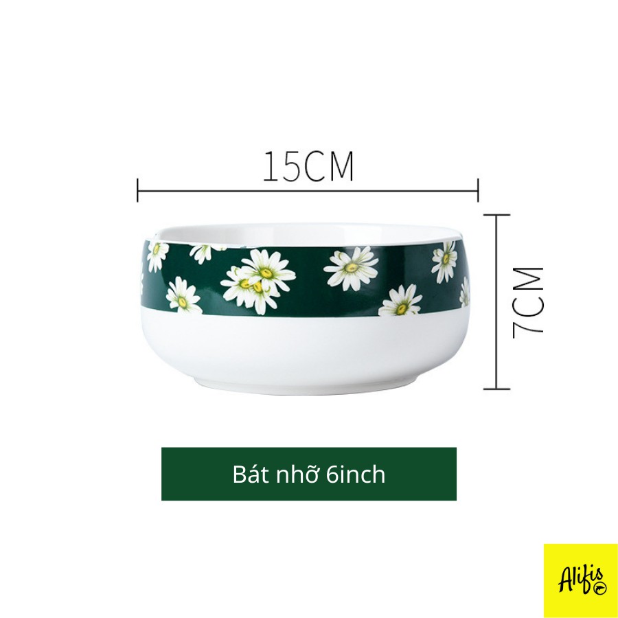 + Bát nhỡ - cúc hoạ mi - nền xanh - 6 inch - mã BAT09-03