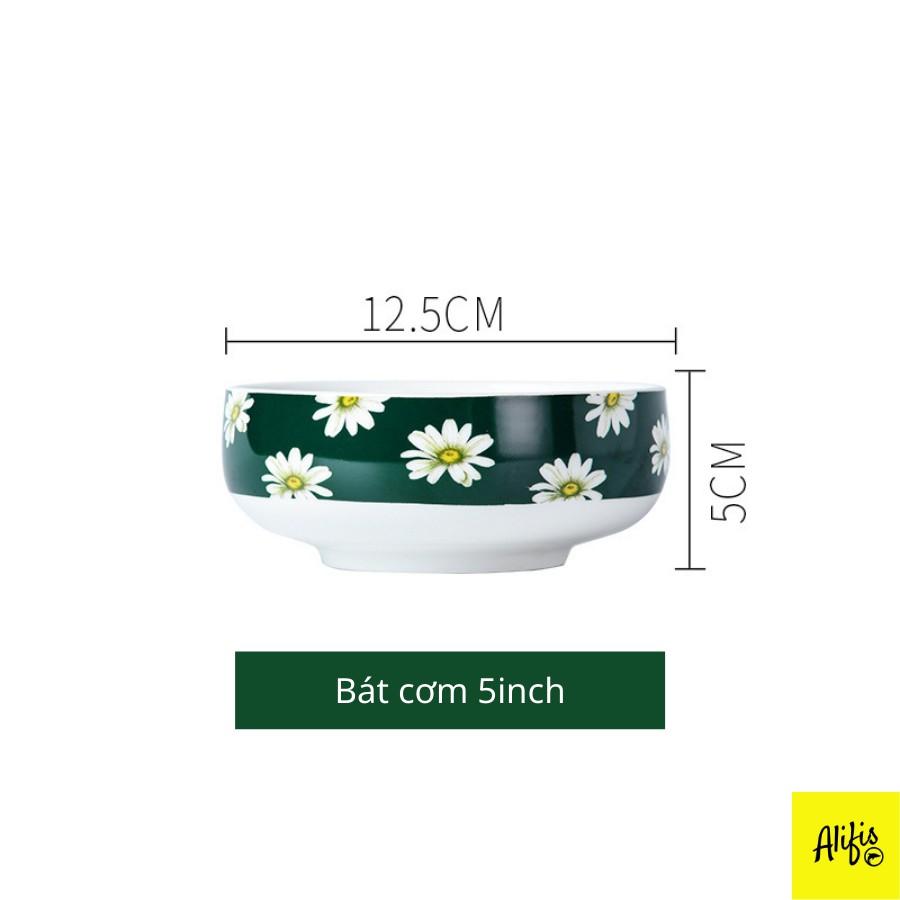 + Bát ăn cơm - cúc hoạ mi - nền xanh - 5 inch - mã BAT09-02