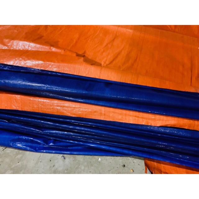 Bạt phủ gồm 2 lớp: 1 mặt màu cam và 1 mặt màu xanh như hình ạ