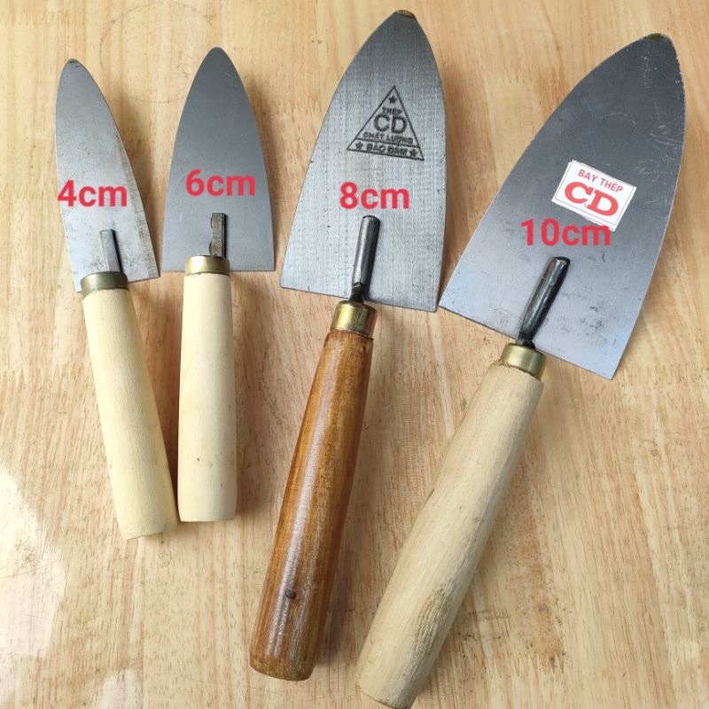 Bay làm hồ xây tô trét xi măng làm vườn thép CD 4cm 6cm 8cm 10cm- Bay là dụng cụ cầm tay dùng để làm láng phẳng bề mặt sệt (bay thợ hồ) hoặc để đào vật chất tơi hay dạng hạt (bay làm vườn).