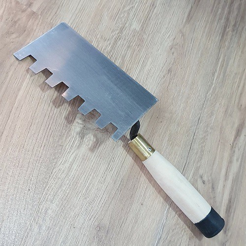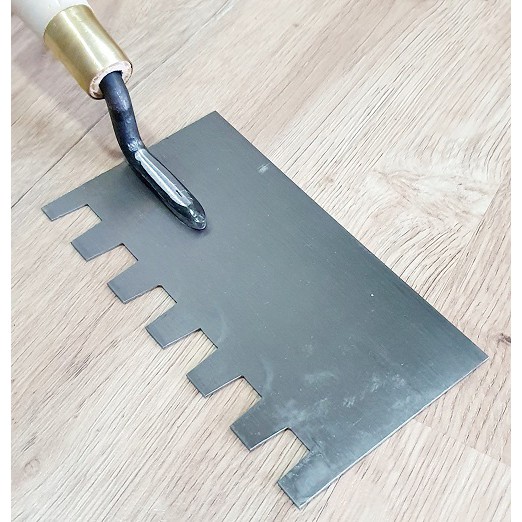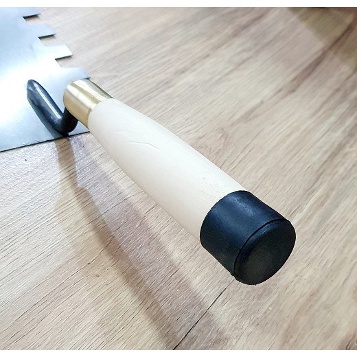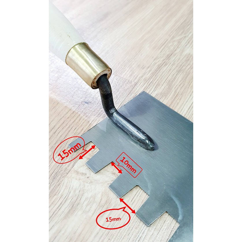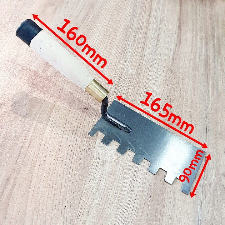 Đặc tính sản phẩm Bay Xây Tô Vuông Lưỡi Thép 9x16,5cm Rãnh Răng Cưa Vuông Lớn 15x15x10mm Cán Gỗ Đuôi Bọc Nhựa