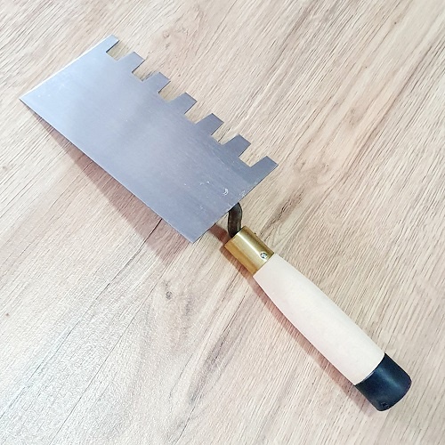 Dòng sản phẩm Bay Xây Tô Vuông Lưỡi Thép 9x16,5cm Rãnh Răng Cưa Vuông Lớn 15x15x10mm Cán Gỗ Đuôi Bọc Nhựa