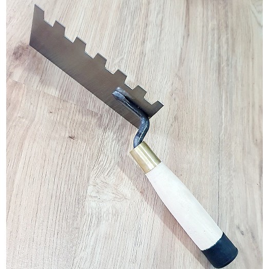 Bay xây vuông rãnh răng cưa là dụng cụ xây dựng cần thiết nhất khi xây, trộn, rải vữa xây. Điều chỉnh gạch. Tạo mạch. Chặt gạch.