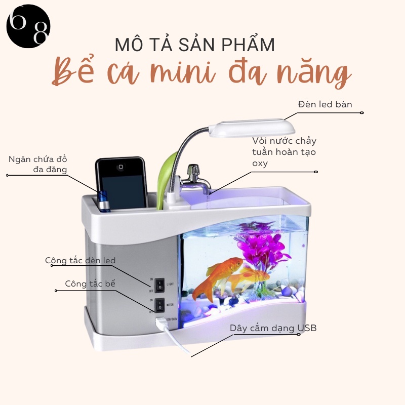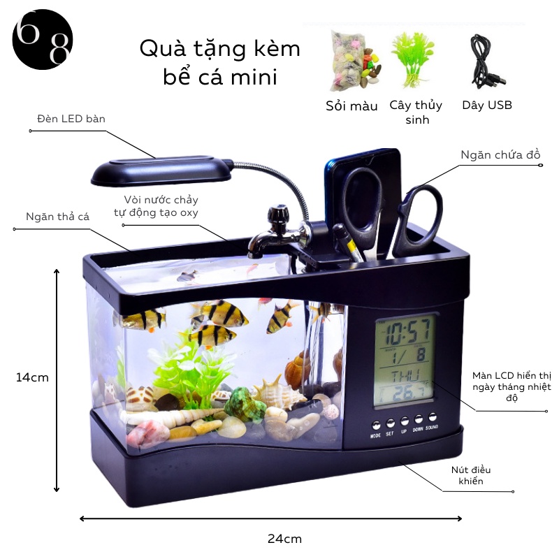THÔNG TIN SẢN PHẨM:- Bể cá mini bao gồm: 1 bể cá,1 dây nguồn(dây dạng USB)