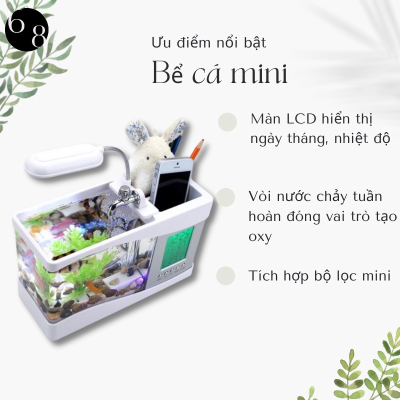 Bể Cá mini Phong Thủy 68 Hồ Cá cảnh thủy sinh để bàn