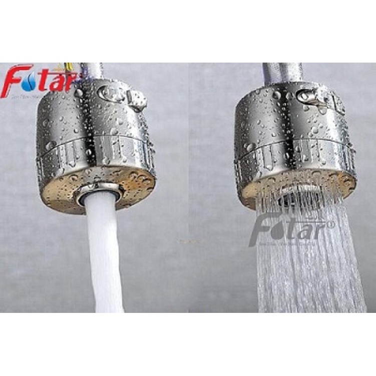 Đầu vòi được thiết kế với nút tạo bọt, tạo dòng nước xoáy, làm tơi nước và chống văng bắn, đầu vòi hai chế độ bằng nhựa mạ inox