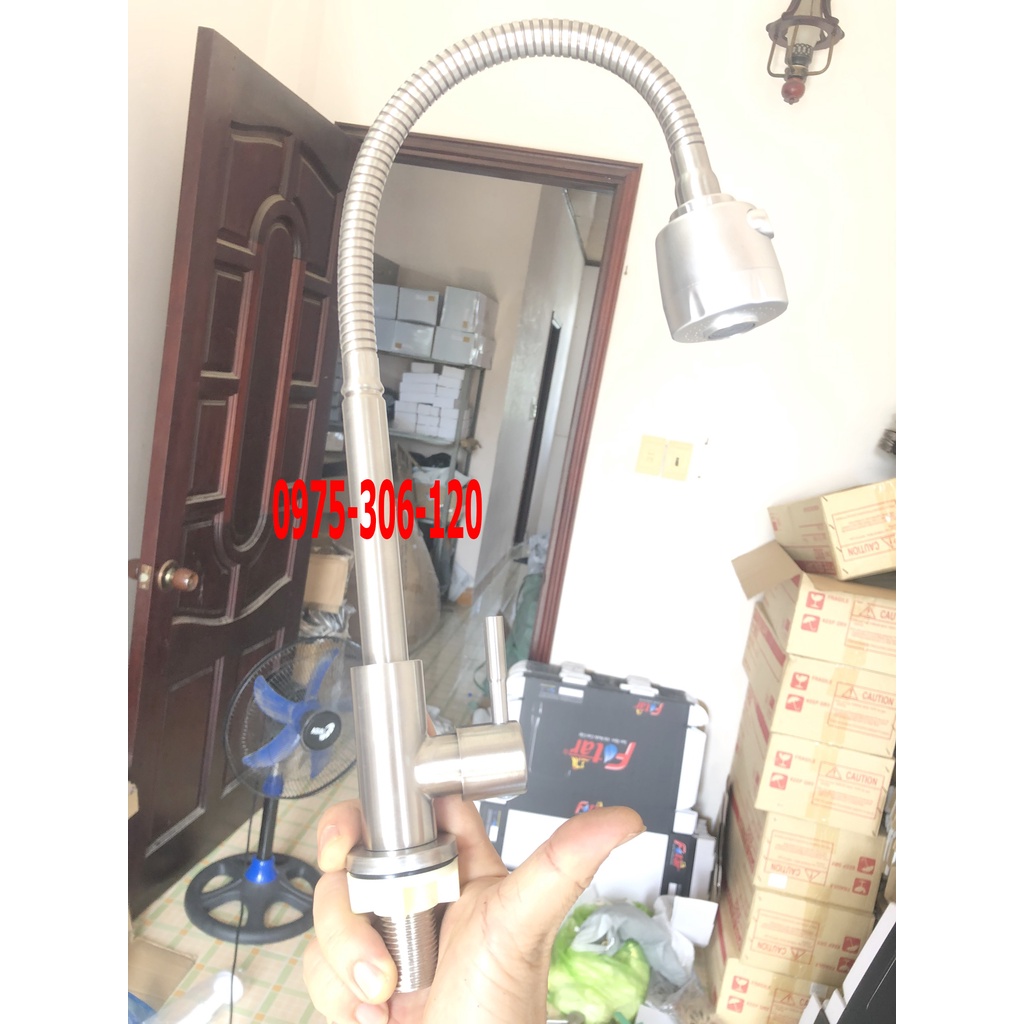 vòi lò xo nên có thể điều khiển lên xuống sang trái sang phải để rửa được bất cứ vị trí nào đặc biệt là rửa thành chậu rửa chén, những loại vòi cứng thì không rửa được vậy.