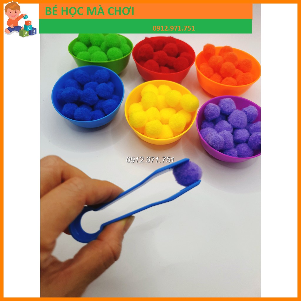 Giới thiệu Bé gắp pompom phân loại màu sắc với set 6 bát 2 kẹp