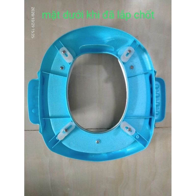 * Bệ lót thu nhỏ bồn cầu phía trên bề mặt có lớp đặt 1 lớp mút cố định và chắc chắn nên bé ngồi êm mông không bị cấn hay đau .