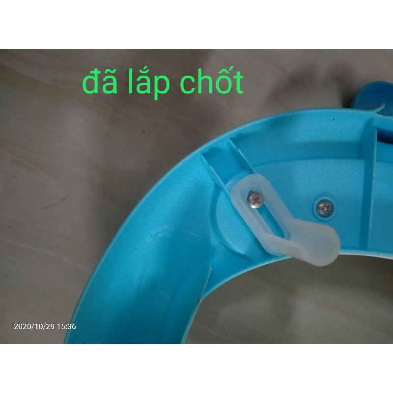 - Để tiện cho việc vận chuyển nhà sản xuất họ không lắp chốt sẵn ạ nên mỗi sản phẩm sẻ gửi đi kèm theo 1 bộ gồm 4 cái chốt và 4 con ốc về các bạn lắp theo các bước trên hình ạ