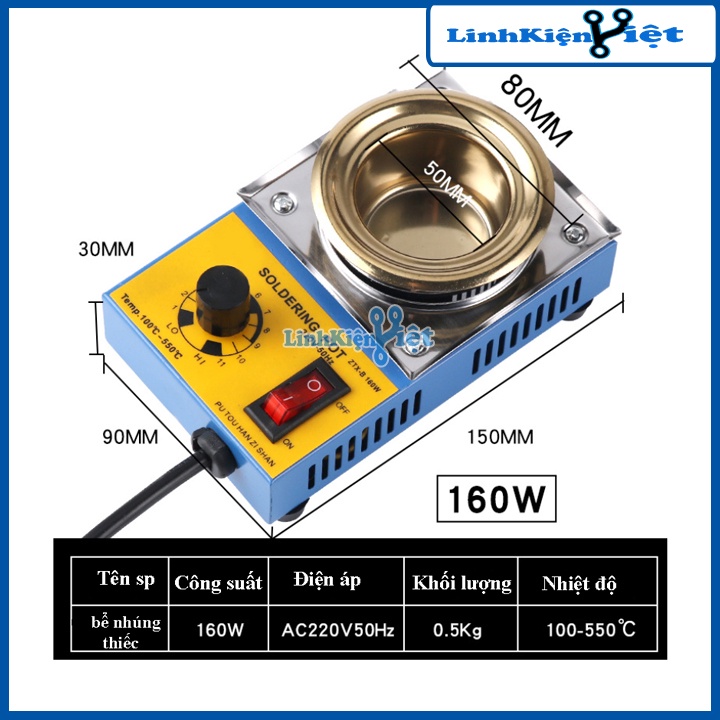 • Kích thước máy nấu thiếc: 150x90x30mm
