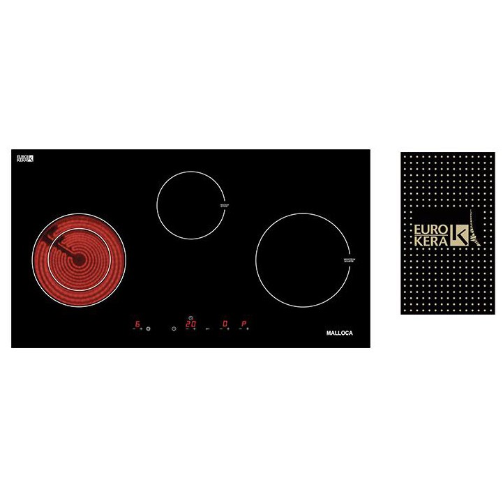 Bếp kính âm 2 từ và 1 hồng ngoạiMặt kính EuroKera – Kính đen chấm bi xanh ngọc bích