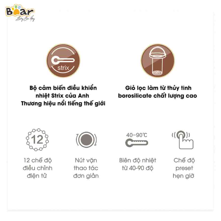 Giới thiệu [Bear Chính Hãng] Máy Pha Trà Bear SUBE011 trắng ngà, chất liệu thủy tinh cao cấp chịu nhiệt cao với nhiều chế độ