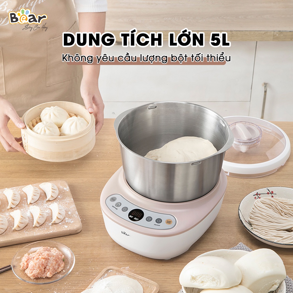- Ngoài việc làm bánh, máy trộn bột 5L Bear còn có thể sản xuất mỳ tươi, vỏ sủi cảo, vỏ há cảo, vỏ bánh gối,...