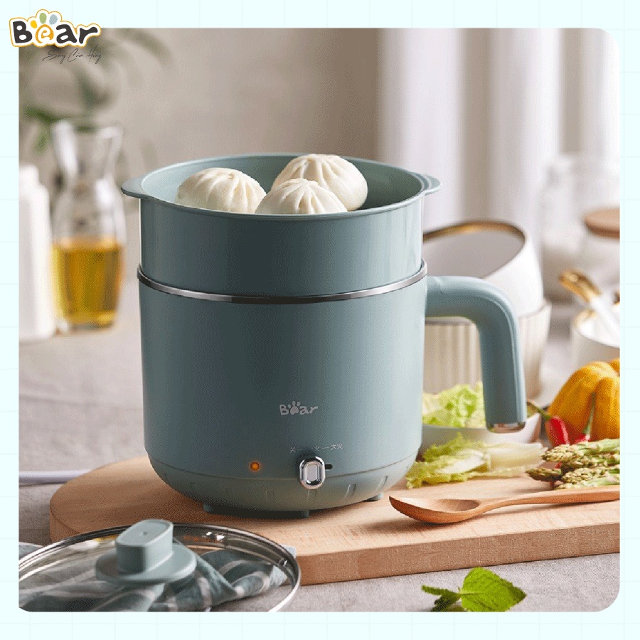 Thiết Bị Điện Gia Dụng > Đồ gia dụng nhà bếp > Nồi nấu đa năng || [Bear Chính Hãng] Nồi đa năng mini Bear DRG-D12M5 – Xanh lá nhạt với ông suất lớn 600W kết hợp với 2 mức nhiệt.Còn hàng