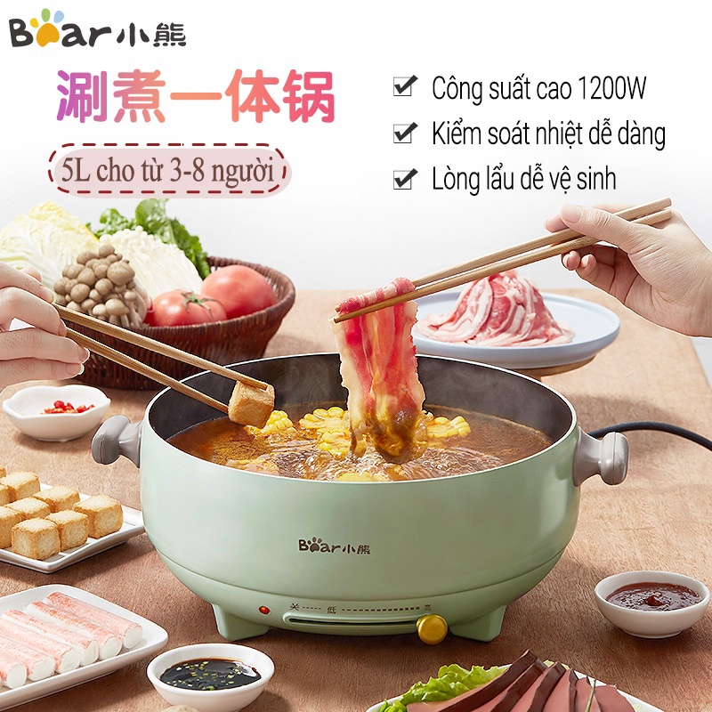 [Bear Chính Hãng]Nồi Lẩu Điện Bear DHG-B50C1 Màu Xanh Lá với công suất 1200W, dung tích 5L,hợp với gia đình từ 3-8 người