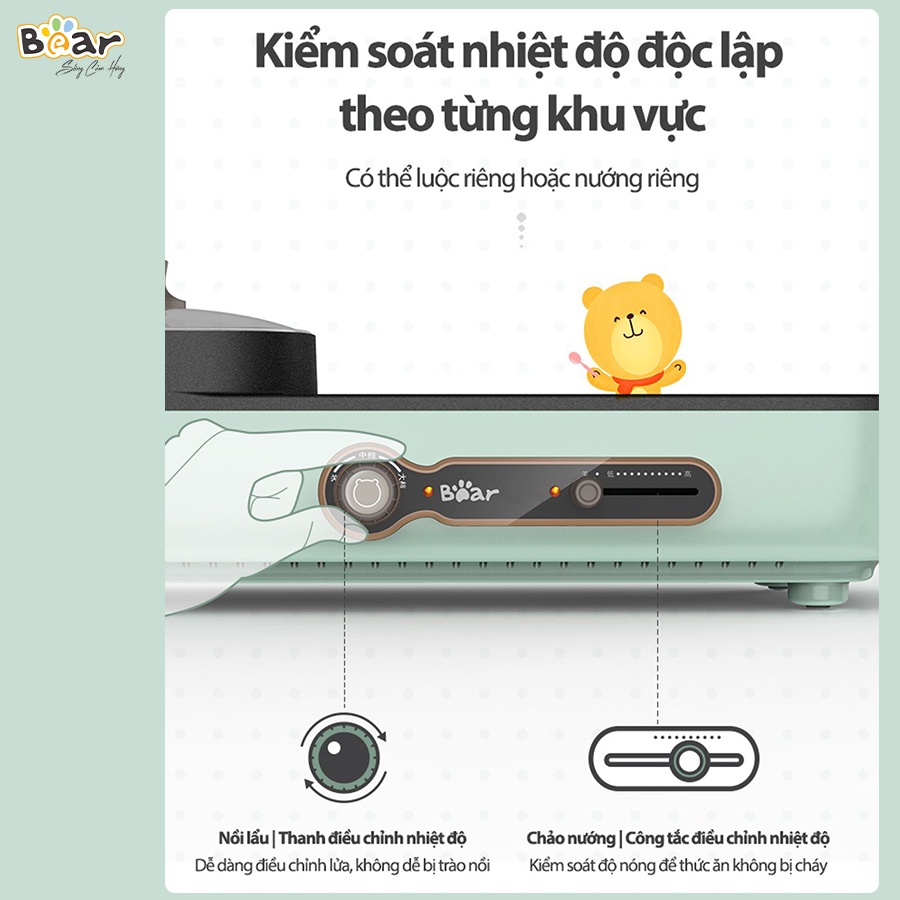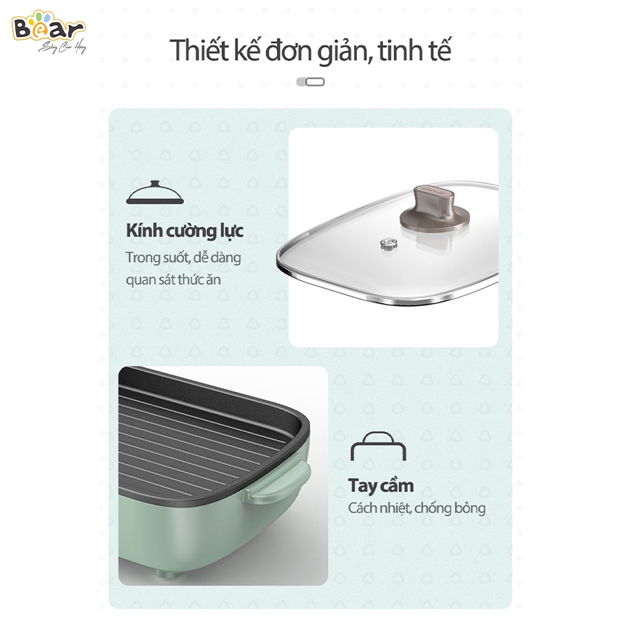Giới thiệu [Bear Chính Hãng] Nồi lẩu nướng 2 ngăn đa năng Bear_DKL-C15G1 Xanh lá.