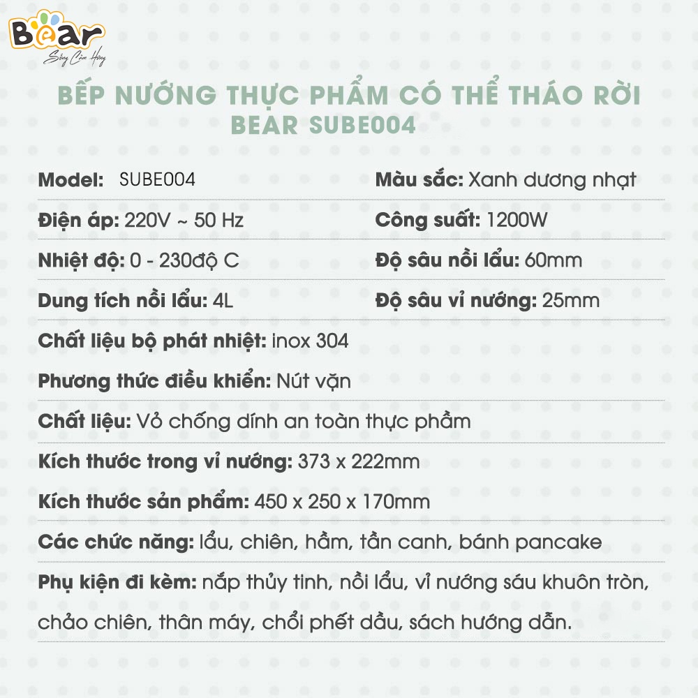 Giới thiệu [Bear Chính Hãng] Nồi Lẩu Nướng 3 Khay Đa Năng (3 in 1) SUBE004, khay lẩu 4 lít, khay bánh 6 khuôn nhỏ tròn, khay nướng