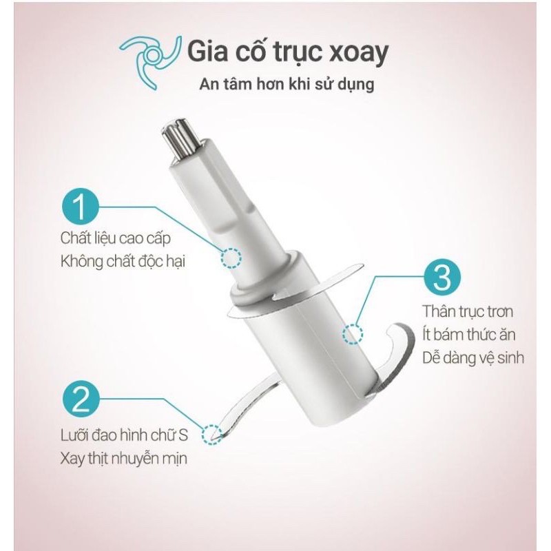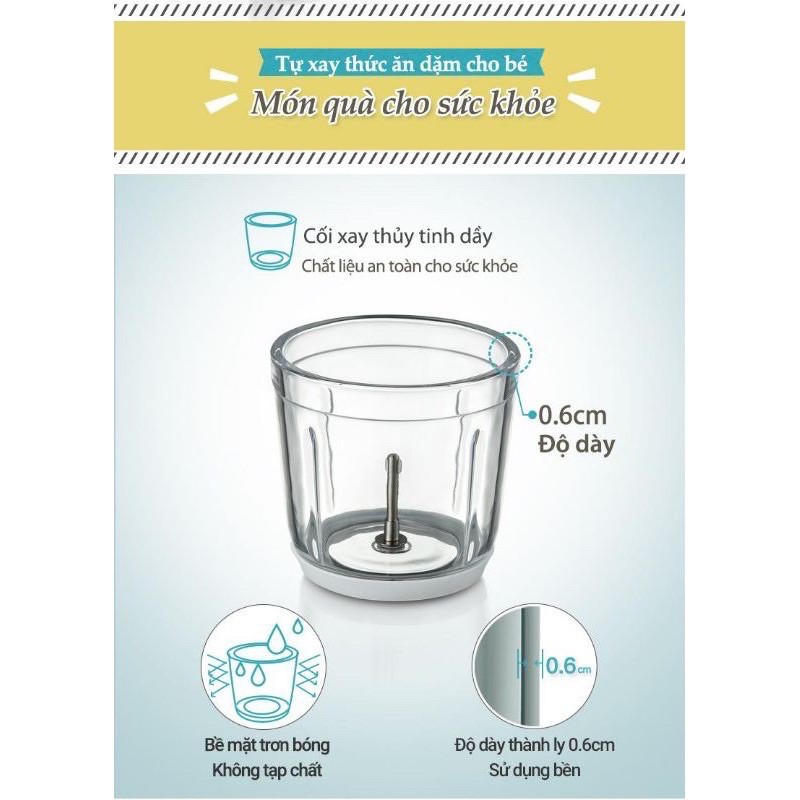 - Thiết kế đơn giản với cốc xay và lưỡi dao tháo rời, dễ vệ sinh, thanh thế phụ kiện khi cần thiết. Phù hợp cho các mẹ sử dụng xay đồ ăn dặm cho bé cũng như làm các món xay cho cả gia đình.