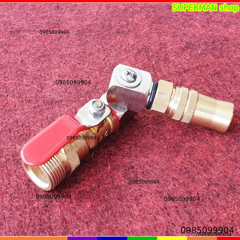 - Béc chuyển từ đầu 22mm của dây cao áp máy rửa xe gia đình sáng đầu béc phun có thể điều chỉnh góc tùy thích, giúp cho việc vệ sính phần trên của máy lạnh dễ dàng khi gặp phải máy lắp sát trần không đưa s.úng xit vào được.