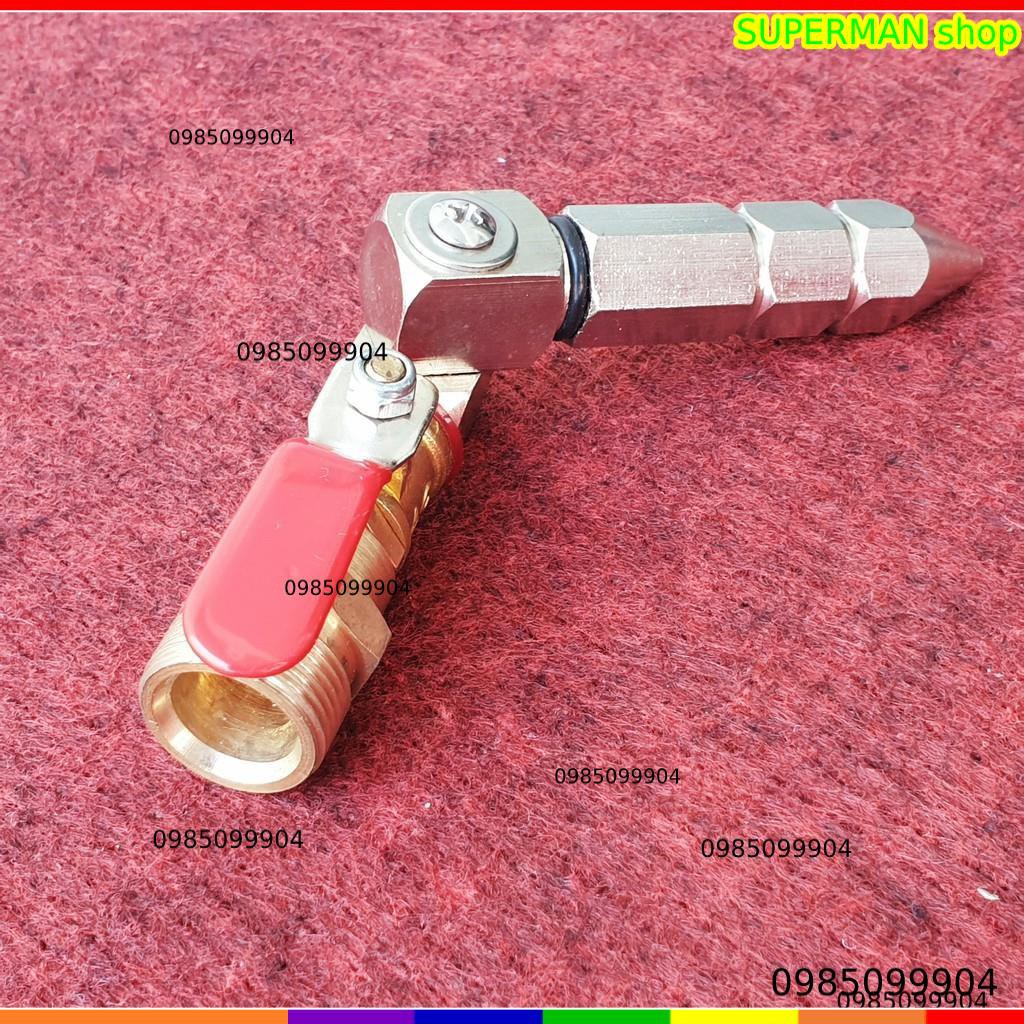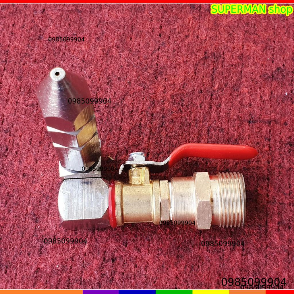- Béc chuyển từ đầu 22mm của dây cao áp máy rửa xe gia đình sáng đầu béc phun có thể điều chỉnh góc tùy thích, giúp cho việc vệ sính phần trên của máy lạnh dễ dàng khi gặp phải máy lắp sát trần không đưa s.úng xit vào được.