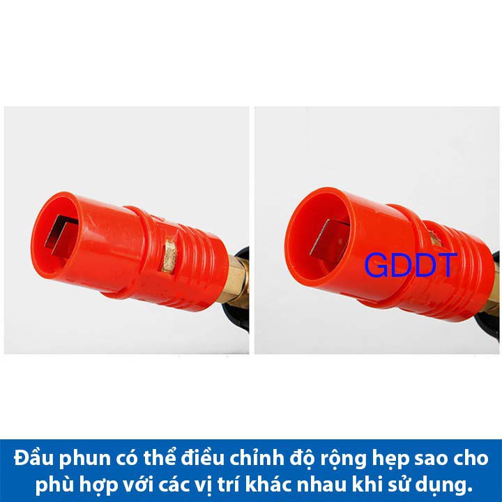 - Đầu nối răng trong 13mm vừa với dây rửa xe; chỉnh tia thẳng ( mở ra ) và tia xòe ( vặn vô )