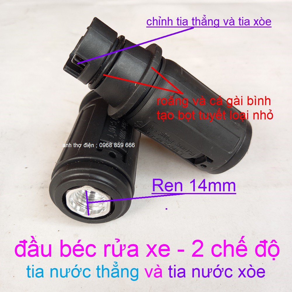 Thông tin nổi bật- Tên sản phẩm: Béc xịt rửa xe mỏ vịt kiểu gài gắn súng xịt rửa áp lực cao - Lắp được bình bọt tuyết 0,5L