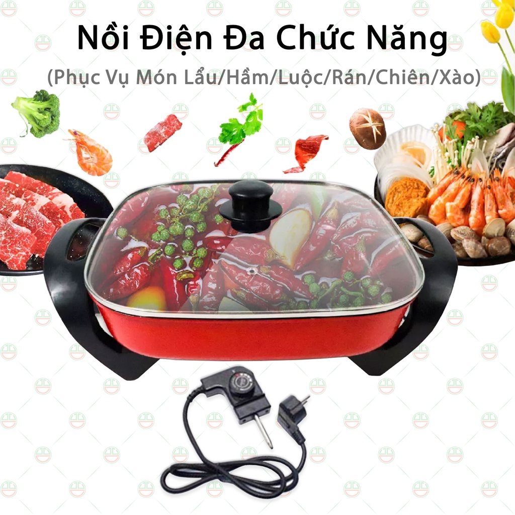 [Bền Bỉ] Nồi Lẩu Điện Đa Năng - Hình Vuông Cỡ Lớn 5 Lít Đường Kính 32cm, Chiên Xào Hầm Luộc Rán - Chống Dính