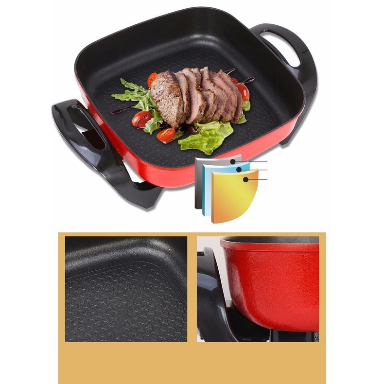 Giới thiệu [Bền Bỉ] Nồi Lẩu Điện Đa Năng - Hình Vuông Cỡ Lớn 5 Lít Đường Kính 32cm, Chiên Xào Hầm Luộc Rán - Chống Dính