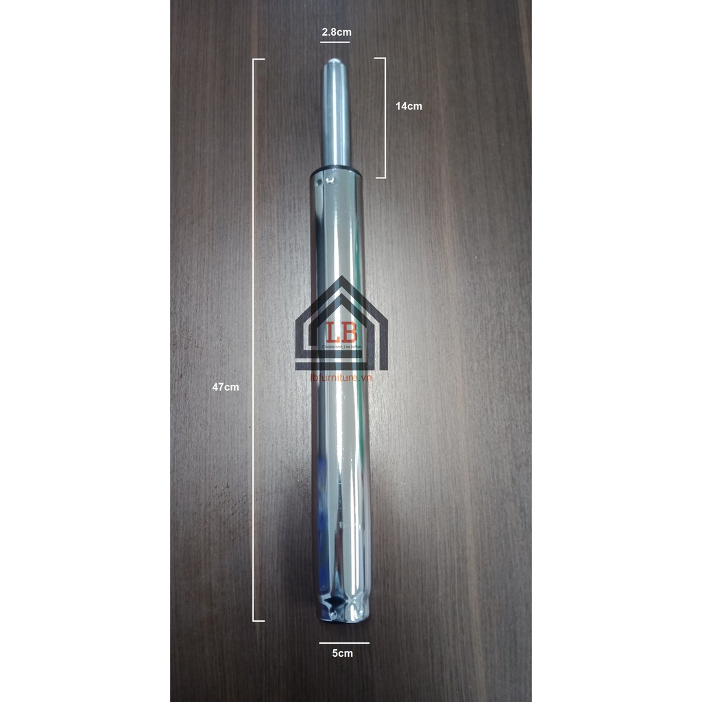 - Kích thước: Đường kính 5cm, chiều cao ngắn nhất (khi nén hơi) 47 cm, chiều cao dài nhất (khi xả hơi) 57 cm